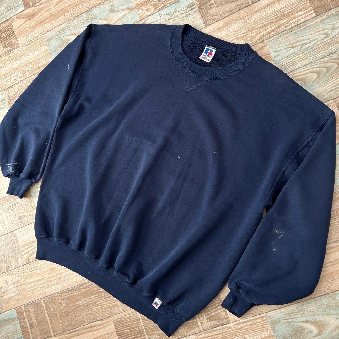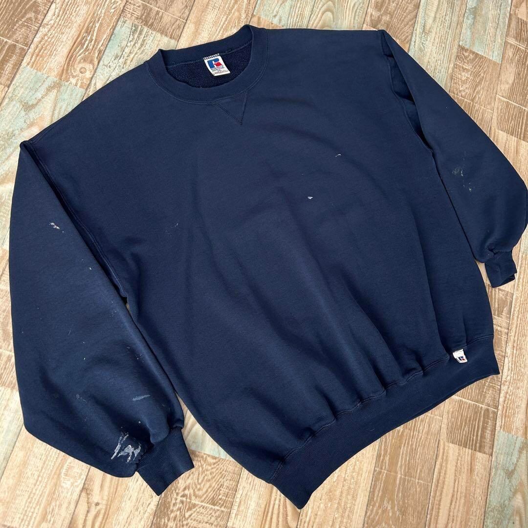 唯一無二 USA製 RUSSELL ATHLETIC ラッセル スウェット 無地 前V ペンキ XXL ネイビー