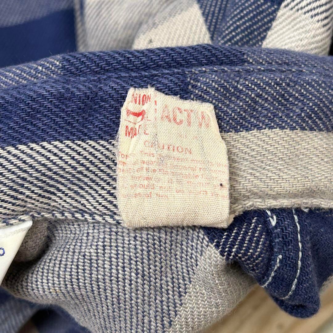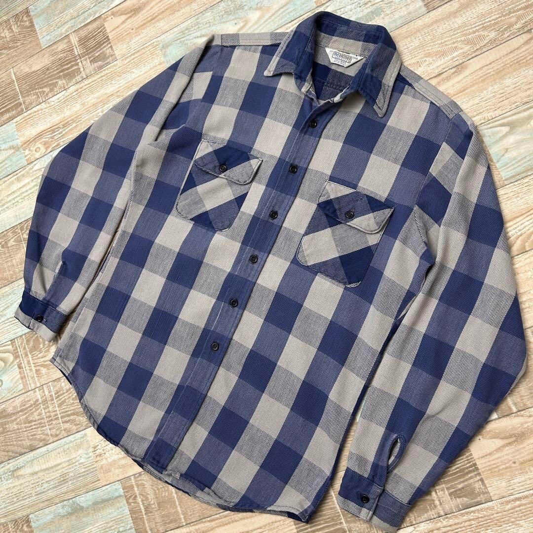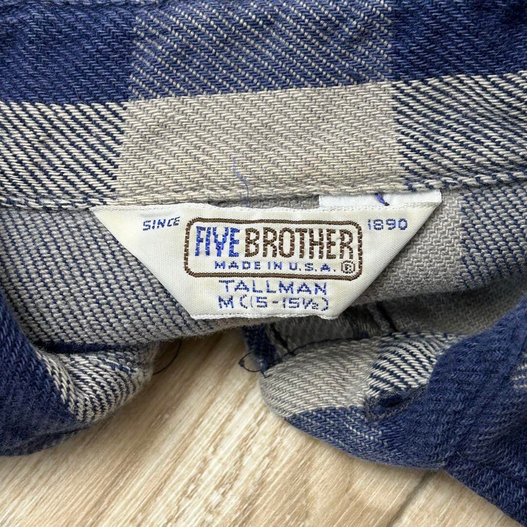 好配色 USA製 70s FIVE BROTHER ファイブブラザー ネルシャツ ブロックチェック ネイビー グレー M